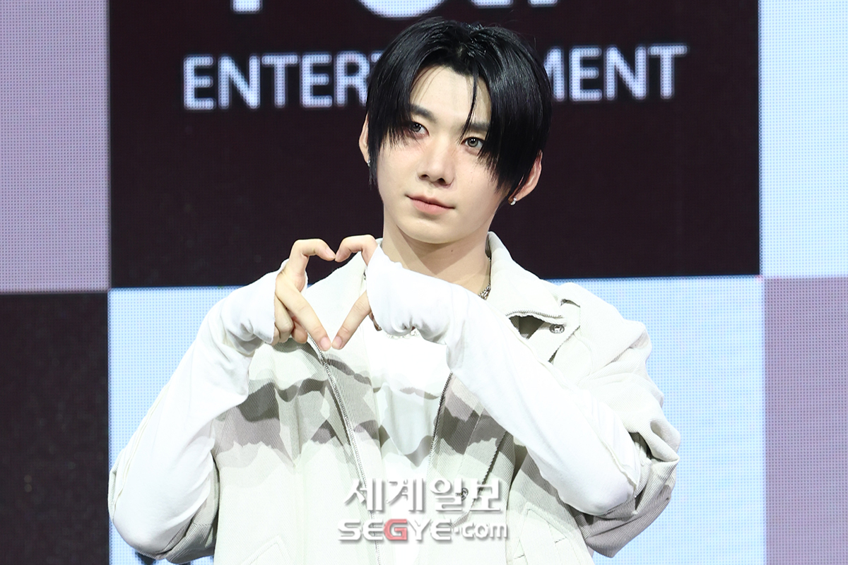 그룹 아홉(AHOF) 박한이 4일 서울 광장동 예스24 라이브홀에서 열린 두 번째 미니앨범 'The Passage(더 패시지)' 쇼케이스에 참석해 포즈를 취하고 있다.