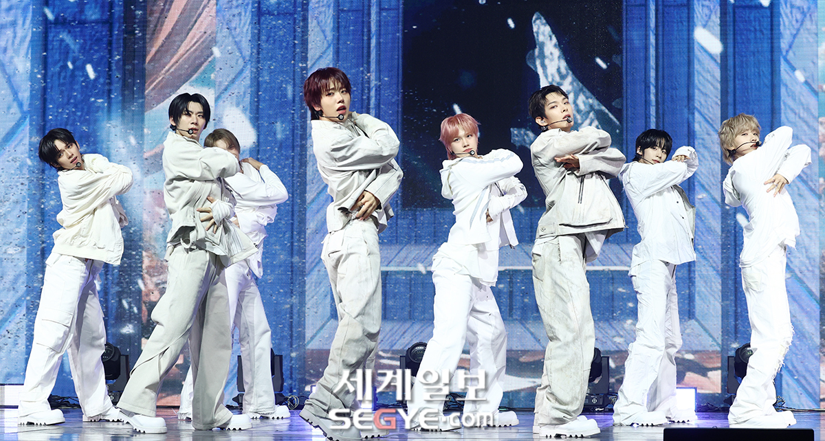 그룹 아홉(AHOF)가 4일 서울 광장동 예스24 라이브홀에서 열린 두 번째 미니앨범 'The Passage(더 패시지)' 쇼케이스에 참석해 열띤 공연을 펼치고 있다.