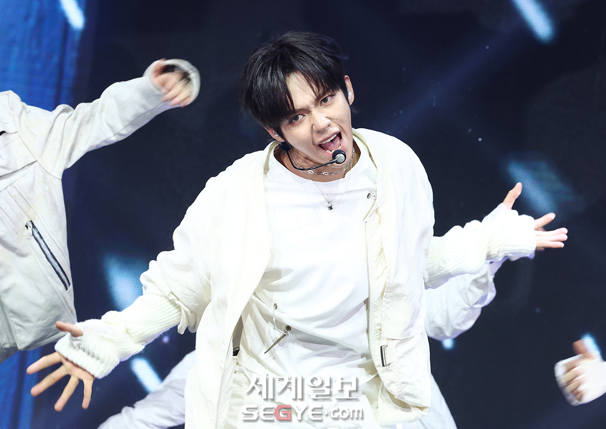그룹 아홉(AHOF) 제이엘이 4일 서울 광장동 예스24 라이브홀에서 열린 두 번째 미니앨범 'The Passage(더 패시지)' 쇼케이스에 참석해 열띤 공연을 펼치고 있다.