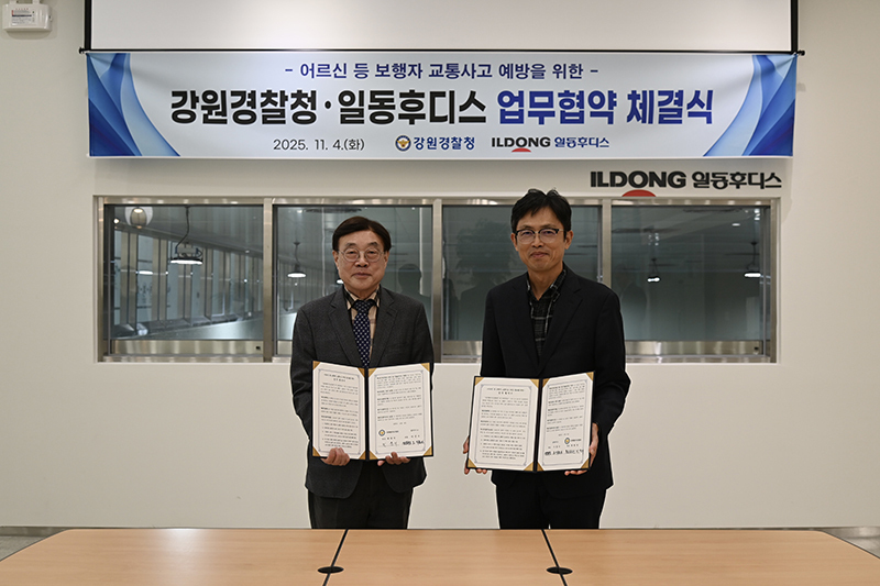 이준수 일동후디스 대표이사는 "어르신 등 보행자 교통사고 예방이라는 좋은 취지로 강원경찰청과 협업할 수 있어 기쁘게 생각한다"며 "보행자 교통사고 예방을 위해 적극지원 하겠다"고 화답했다.