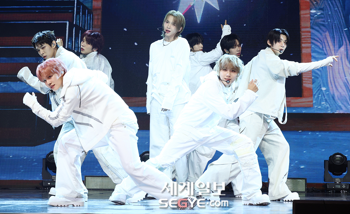 그룹 아홉(AHOF)가 4일 서울 광장동 예스24 라이브홀에서 열린 두 번째 미니앨범 'The Passage(더 패시지)' 쇼케이스에 참석해 열띤 공연을 펼치고 있다.