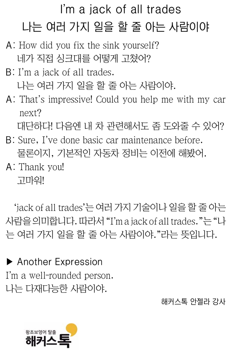 나는 여러 가지 일을 할 줄 아는 사람이야