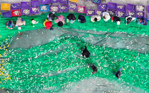 4일 제주시 한림읍 한림항에서 어민들이 참조기를 그물에서 떼어내는 작업을 하고 있다. 참조기는 가을이 제철이다.