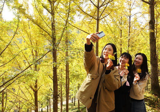 4일 경기 용인시 에버랜드에서 시민들이 노랗게 물든 은행나무 숲에서 사진을 찍고 있다. 이곳 ‘비밀의 숲’은 에버랜드가 산림녹화를 위해 포곡읍 신원리 일대 15만㎡에 조성한 국내 최대 은행나무 군락지로, 이달 7∼10일 가든패스 구독자를 대상으로 공개한다.