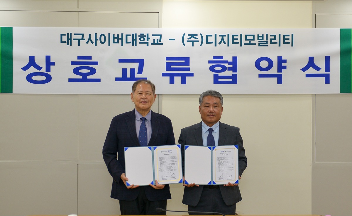 대구사이버대학교는 최근 디지티모빌리티와 상호 교류와 홍보 협력을 통한 공동 발전을 내용으로 한 업무협약(MOU)을 체결했다고 4일 밝혔다.