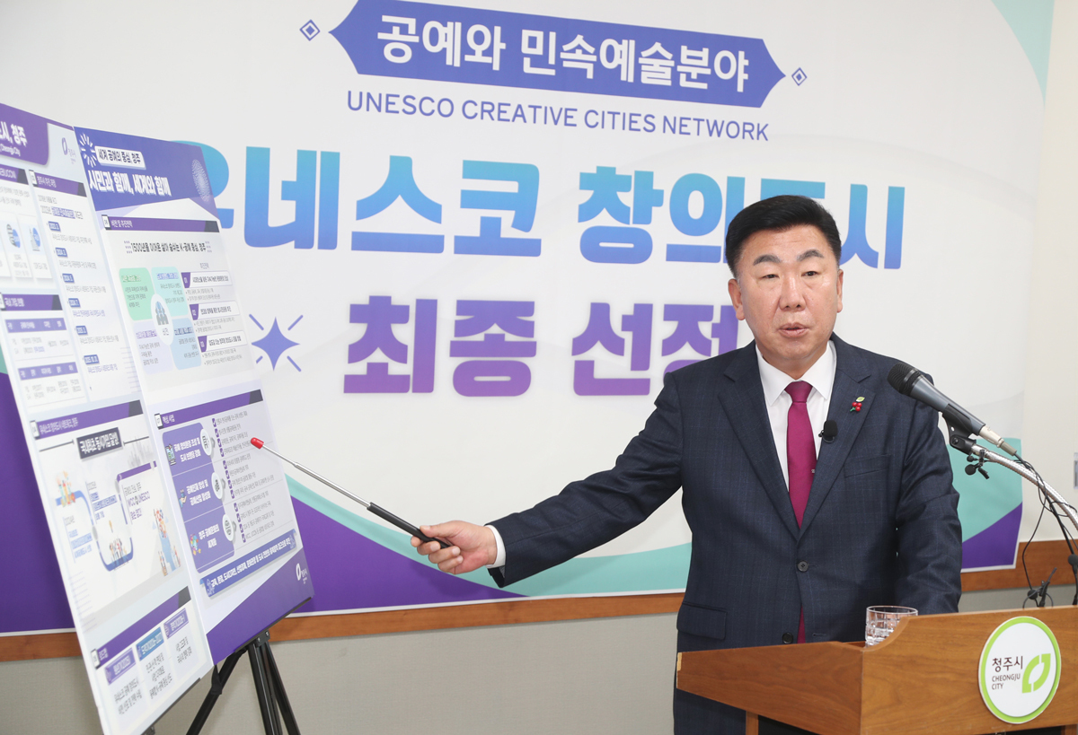 이범석 청주시장은 5일 시청 임시청사 언론브리핑에서 “공예 중심지 청주가 유네스코 창의도시 네트워크 가입을 통해 세계 공예의 중심도시로 도약하게 됐다”며 “청주의 풍부한 문화자산과 공예 정신을 바탕으로 88만 시민과 전 세계인이 함께하는 창의도시 청주를 만들어가겠다”고 밝혔다. 유네스코 창의도시 네트워크는 2004년 출범해 도시의 문화적 자산과 창의력을 기반으로 문화산업의 지속가능한 발전을 도모해 온 국제협의체다. 현재 8개 분야(공예·민속예술, 디자인, 영화, 미식, 문학, 미디어아트, 음악, 건축)에서 100개국 408개 도시가 활동 중이며 국내 가입도시는 7개 분야 13개 도시다.