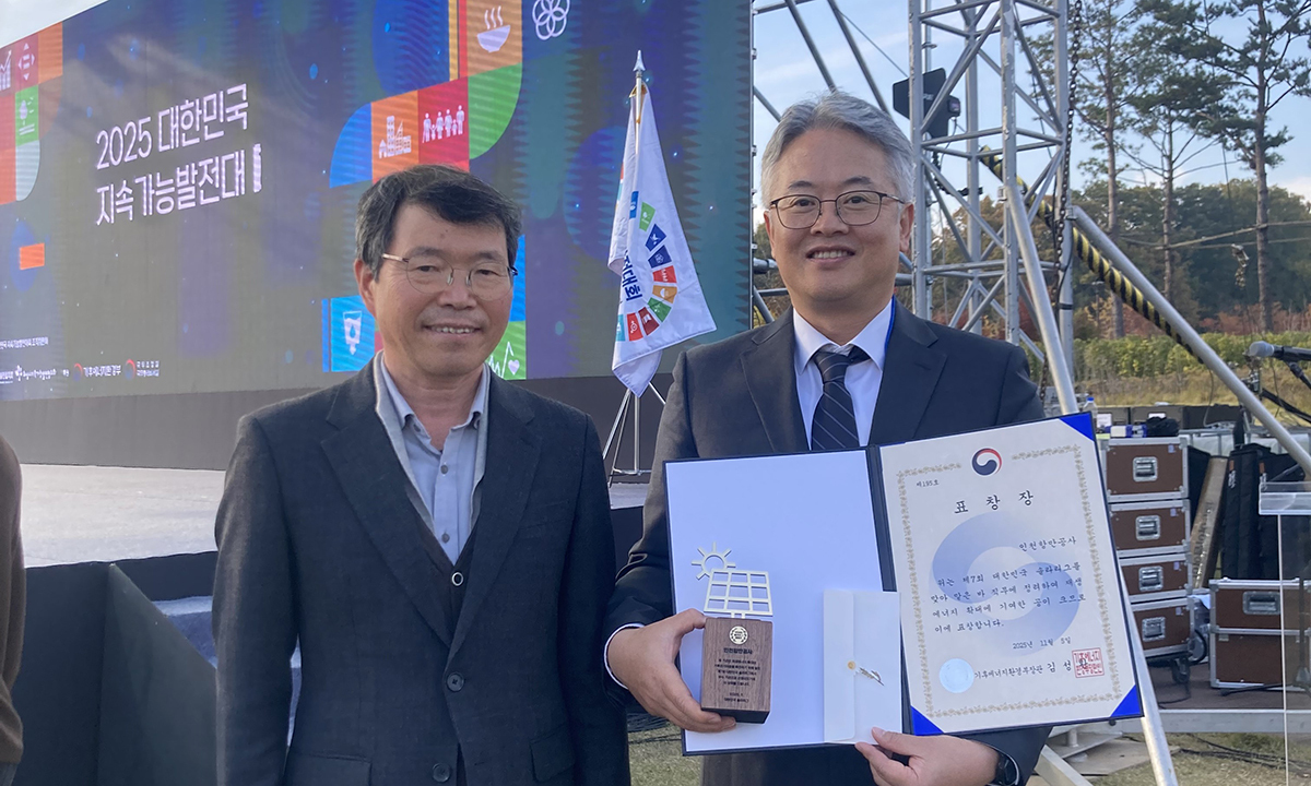 재생에너지 보급 확대 및 탄소중립 실현에 기여한 지자체, 공공기관, 민간 업·단체를 포상하는 전국 규모 대회로 올해 7회째다. 서류와 발표 심사 등을 거쳐 인천항만공사는 공공부문 1위에 해당하는 기후부 장관상을 거머쥐었다.