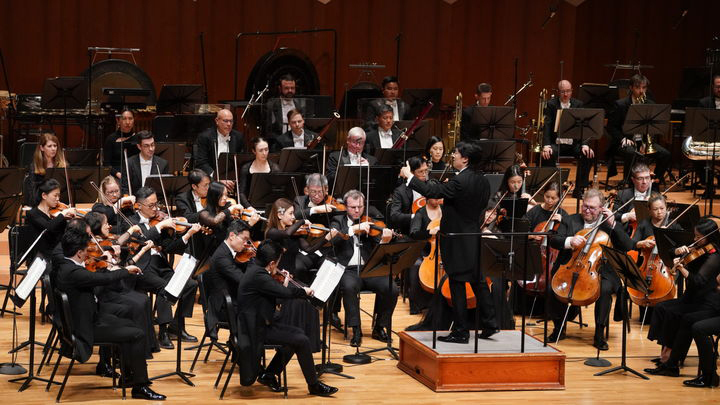 이번 공연은 한국과 홍콩을 대표하는 두 현대 작곡가, 진은숙과 찰스 쾅의 작품으로 문을 열었다. 아시아의 두 도시가 지금 이 순간 만들어내는 음악을 나란히 듣는 것, 그 기획 자체가 흥미로웠다. 진은숙의 ‘수비토 콘 포르차’는 베토벤 탄생 250주년을 위해 쓰인 5분짜리 파편이 몰아치는 폭풍우다. 시작의 강렬한 일격이 청중의 귀를 깨우고, 현의 속삭임 사이로 베토벤의 선율 조각이 번쩍이며 나타났다 사라진다. 이질적인 질감이 파도를 만들고, 우리는 그 흐름에 의식을 맡긴 채 같은 방향으로 흔들렸다.
