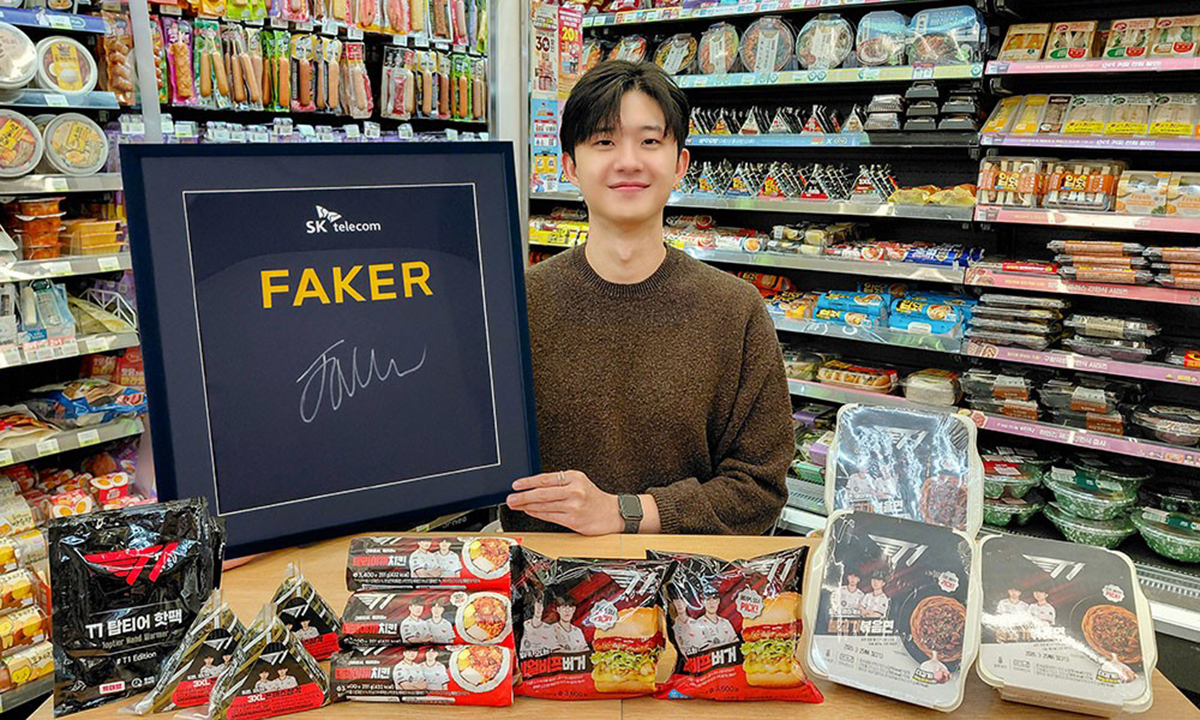 5일 모델이 글로벌 e스포츠 기업 T1 소속 프로게이머 페이커(본명 이상혁)의 사인이 담긴 패널을 들고 있다. 편의점 CU는 T1의 리그오브레전드(LoL) 국제대회 결승 진출을 기념해 제휴 상품 구매 시 원하는 선수의 사인 유니폼 당첨에 응모할 수 있는 이벤트를 진행한다고 밝혔다.