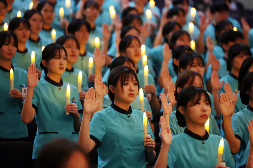 5일 광주 남구 진월동 광주대학교 호심관 대강당에서 열린 ‘제15회 나이팅게일 선서식’에서 현장 실습을 앞둔 간호학과 2학년 학생들이 전문 간호인으로서 책임과 의무를 다할 것을 다짐하는 선서를 하고 있다.