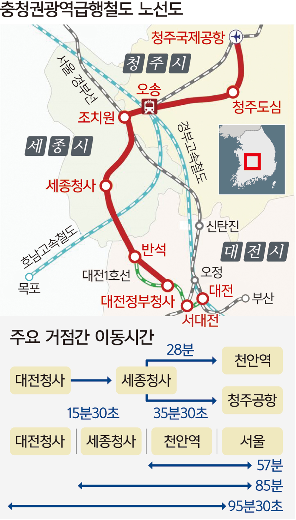 서울·수도권 접근성도 높아진다. 기존 경부선을 활용해 대전청사·세종청사에서 대중교통 환승 없이 서울과 직결되면서 국회, 기업과 중앙부처 간 이동시간이 대폭 줄고 행정 협업 효율이 높아질 것으로 분석된다. 대통령 세종집무실과 국회 세종의사당이 개원하면 세종의 ‘행정수도’ 기능도 한층 강화될 것으로 보인다. 현재 서울에서 세종까지 대중교통으로 이동하려면 KTX 혹은 SRT를 타고 청주 오송역에서 내린 뒤 간선급행버스(BRT)로 갈아타거나 서울 터미널에서 고속·시외버스를 탑승해야 했다. 교통 편의 등을 이유로 지하철로 건설되는 청주는 ‘지하철 시대’를 개막하게 된다.