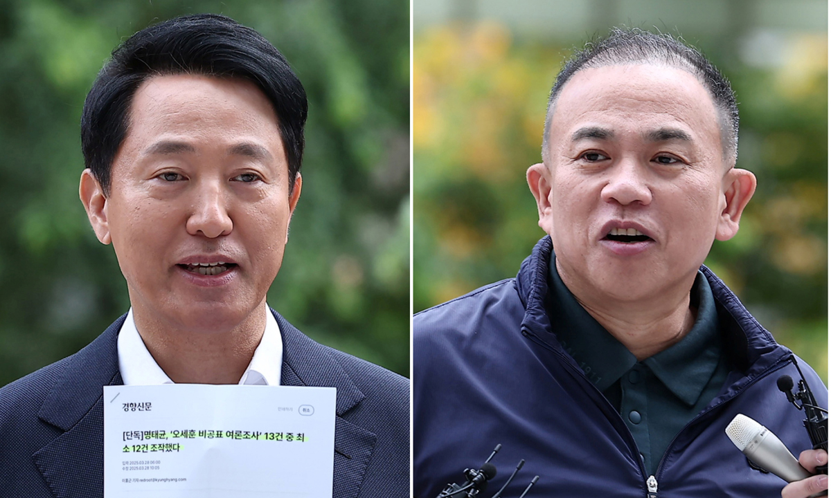 9일 세계일보 취재를 종합하면 오 시장과 명씨는 전날 8시간여의 특검 대질신문에서 각기 다른 주장을 펴며 평행선을 달렸다. 오 시장은 2021년 4·7 서울시장 보선 전 미래한국연구소로부터 미공표 여론조사를 13차례 제공받고, 자신의 후원자인 사업가 출신 김한정씨를 통해 여론조사비 3300만원을 대납했다는 의혹을 받고 있다. 미래한국연구소는 명씨가 사실상 운영한 것으로 알려진 여론조사업체다. 명씨는 자신과 미래한국연구소는 무관하다고 주장하면서도 오 시장 의혹에 대해서는 줄곧 여론조사비 대납이 맞다는 입장을 고수하고 있다.
