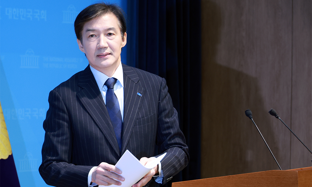 조 전 위원장은 이날 오전 국회에서 기자회견을 열고 "지금까지의 조국을 과거의 조국으로 남기고 '다른 조국', '새로운 조국'으로 국민과 다시 시작하겠다"고 밝혔다.