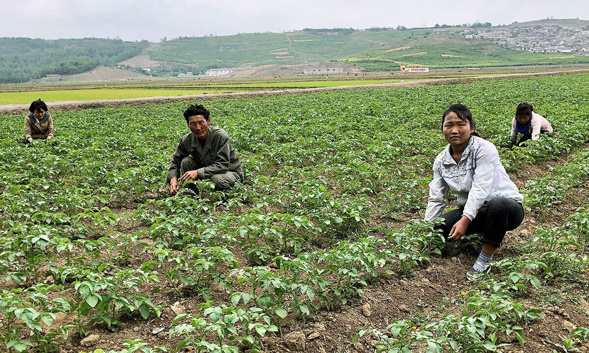 농사일을 하는 북한 주민. 세계일보 자료사진