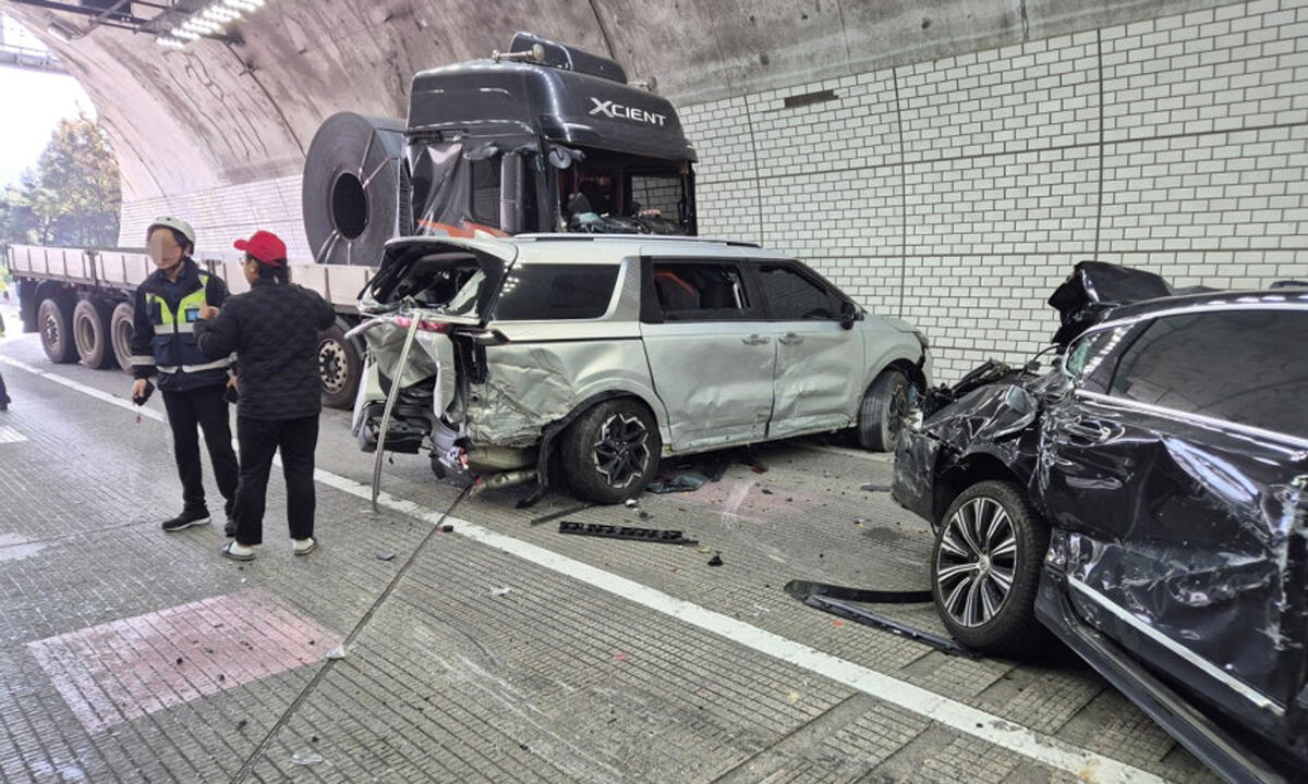 12일 오후 2시 14분께 충남 공주 정안면 천안논산고속도로 상행선 차령터널 안에서 다중추돌사고가 발생해 14명이 다쳤다.