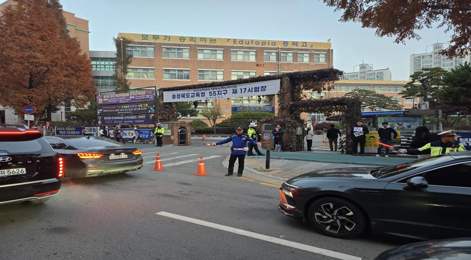충북경찰청은 수험생의 원활한 이동을 위해 401명의 교통경찰과 96대의 장비(순찰차 74대, 싸이카 22대)를 시험장 주변에 배치했다. 시험장 200m 전방부터 차량 출입을 통제하고 불법 주정차 단속도 병행했다.