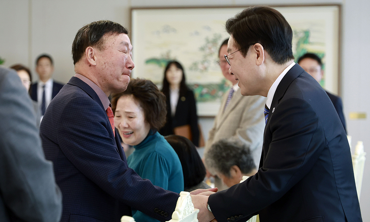 이 대통령은 민가협에 "대한민국 민주주의의 산증인, 역사와 같다"며 "우리 국민을 대표해 고맙다는 말씀을 다시 한번 드린다"며 90도로 허리숙여 인사했다.