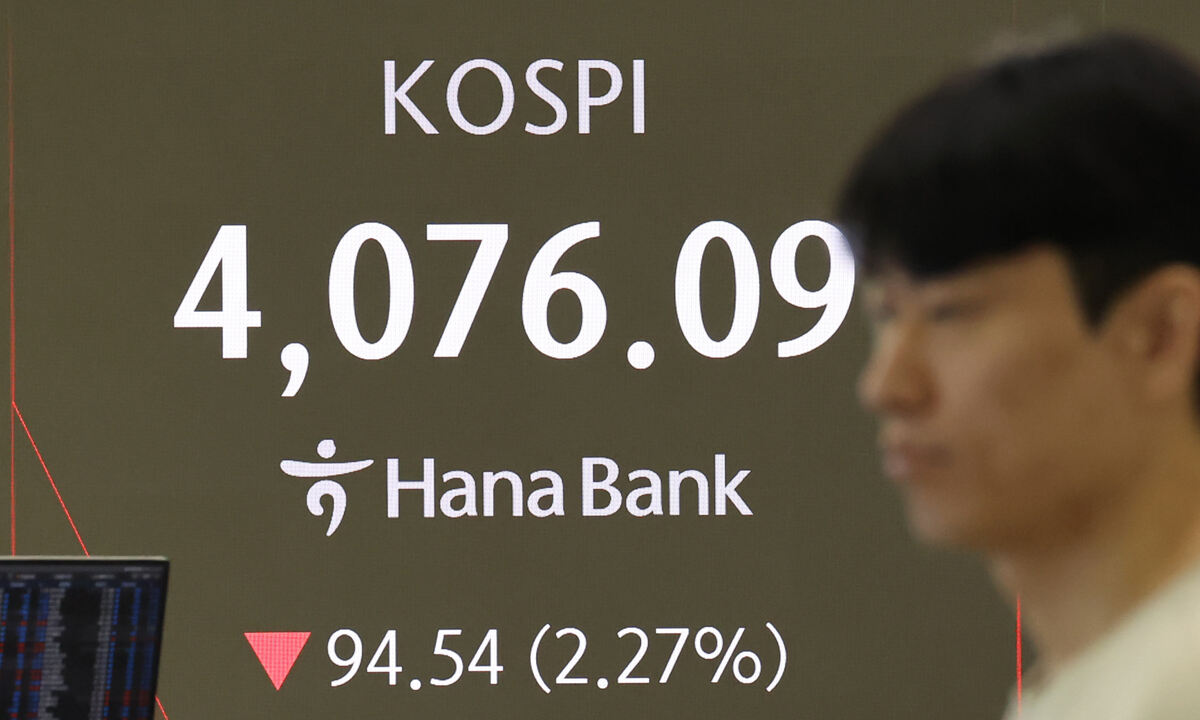 코스피는 이날 오전 9시30분 현재 전장보다 88.22포인트(2.12%) 내린 4082.41에 거래되고 있다. 특히 반도체 대장주 삼성전자와 SK하이닉스가 크게 조정받고 있다. 삼성전자는 3% 넘게 하락해 ‘9만전자’로 주저앉았고 SK하이닉스도 5% 넘게 급락하고 있다. 코스닥 지수 전장 대비 108.72포인트(2.61%) 내린 4061.91로 출발해 하락폭이 일부 줄어들고 있다. 코스피 시가총액 상위 종목 중 LG에너지솔루션, 현대차, 두산에너빌리티, KB금융, HD현대중공업, 기아, 네이버 등이 내리는 반면 한화에어로스페이스, 셀트리온 등은 오르고 있다.