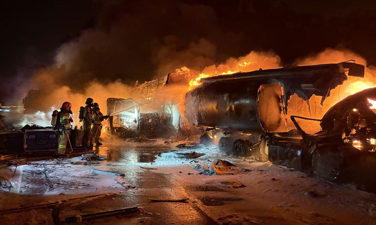 심야 새벽 시간대 고속도로에서 다량의 기름을 싣고 달리던 유조차와 화물차, 승용차 등이 잇따라 들이받으면서 2명이 숨지고 4명이 다치는 사고가 일어났다.