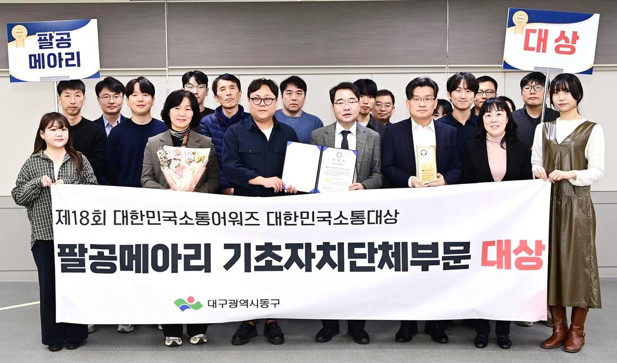 대구 동구청은 자체 소식지 ‘팔공메아리’가 최근 열린 ‘제18회 대한민국 소통어워즈’에서 기초지방자치단체 부문 대상을 받았다고 18일 밝혔다.