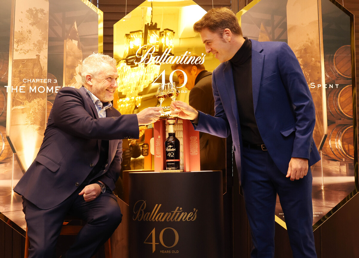 19일 서울 강남구 까사알렉시스 도산점에서 발레타인 마스터 블렌더 샌디 히슬롭(왼쪽)과 페르노리카 코리아 마케팅 총괄 전무 미겔 파스칼이 '발렌타인 40년 마스터클래스 컬렉션 더 모먼트'를 소개하고 있다. '발렌타인 40년 마스터클래스 컬렉션 더 모먼트'는 최소 40년 이상 숙성된 원액을 단 한 번만 블렌딩해 전 세계에서 108병만 한정 생산하며, 국내에서는 단 10병만 선보인다.