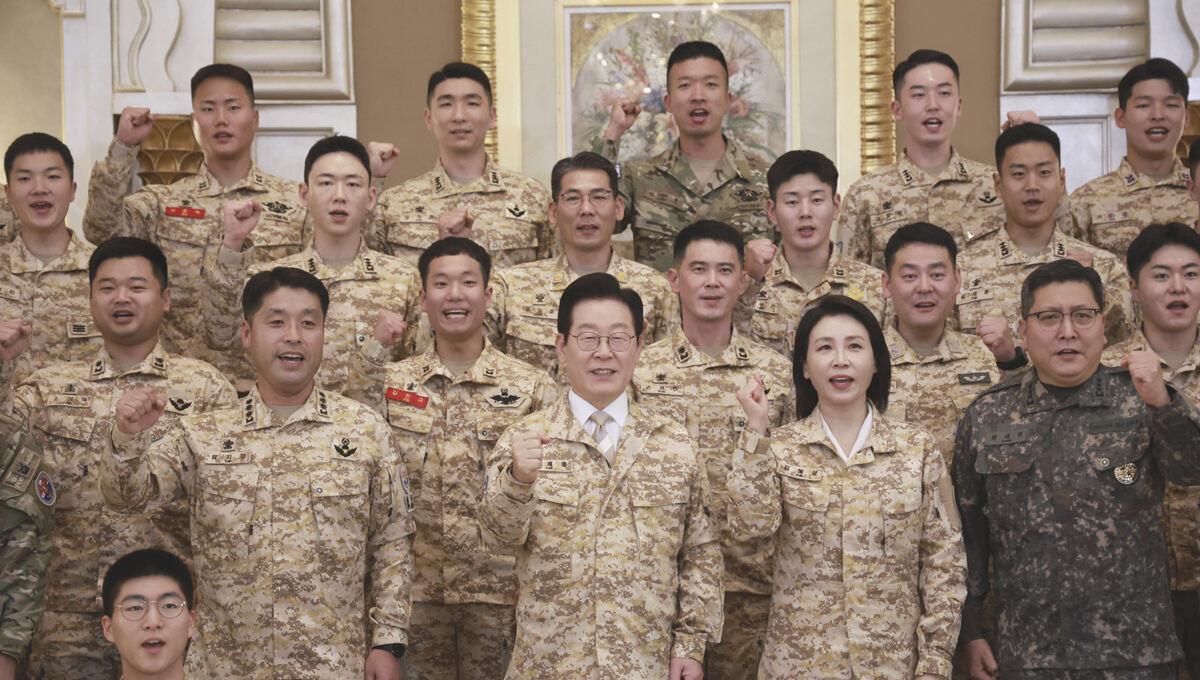 아랍에미리트(UAE)를 국빈 방문한 이재명 대통령은 19일(현지시간) UAE 파견 국군부대인 아크부대 장병들을 만나 “희생하고 있는 여러분을 우리 국민들은 잊지 않을 것”이라며 격려했다. 이날 아부다비 시내 한 호텔에서 열린 행사에는 50여명의 아크부대원이 참석했다. 이 대통령과 부인 김혜경 여사는 모래색 군복을 착용한 채 의자에 앉아 장병들과 대화를 나눴다.