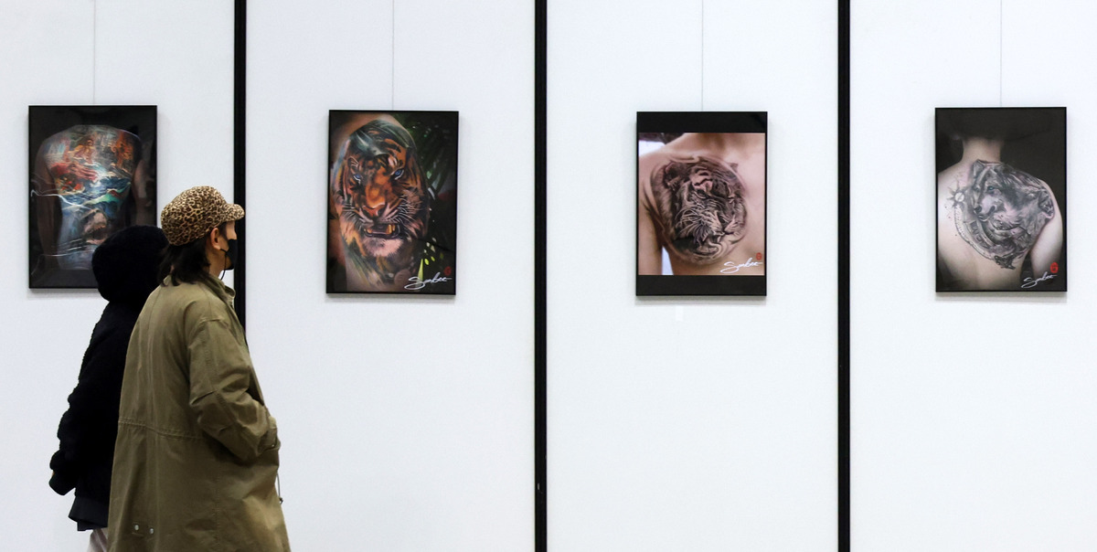 20일 경기 고양시 킨텍스 2전시장에서 열린 '2025 제1회 한국문신산업박람회(TEXPO)'에서 관람객들이 전시된 문신 사진을 보고 있다. 이번 박람회는 지난 9월 국회를 통과한 '문신사법' 시행을 기점으로, 산업의 합법화 시대를 여는 첫 공식 행사로 오는 22일까지 3일간 개최된다.