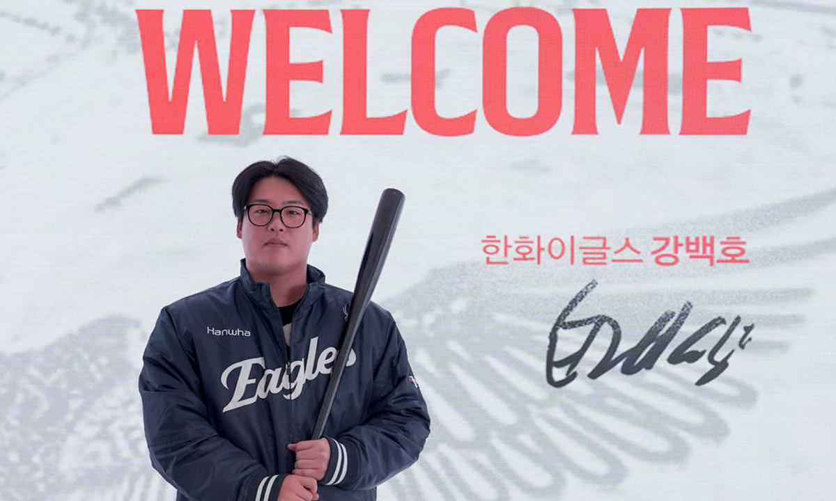 한화는 20일 “FA 강백호와 계약 기간 4년, 계약금 50억원, 연봉 30억원, 옵션 20억원 등 최대 100억원 규모에 계약을 맺었다”라고 발표했다.