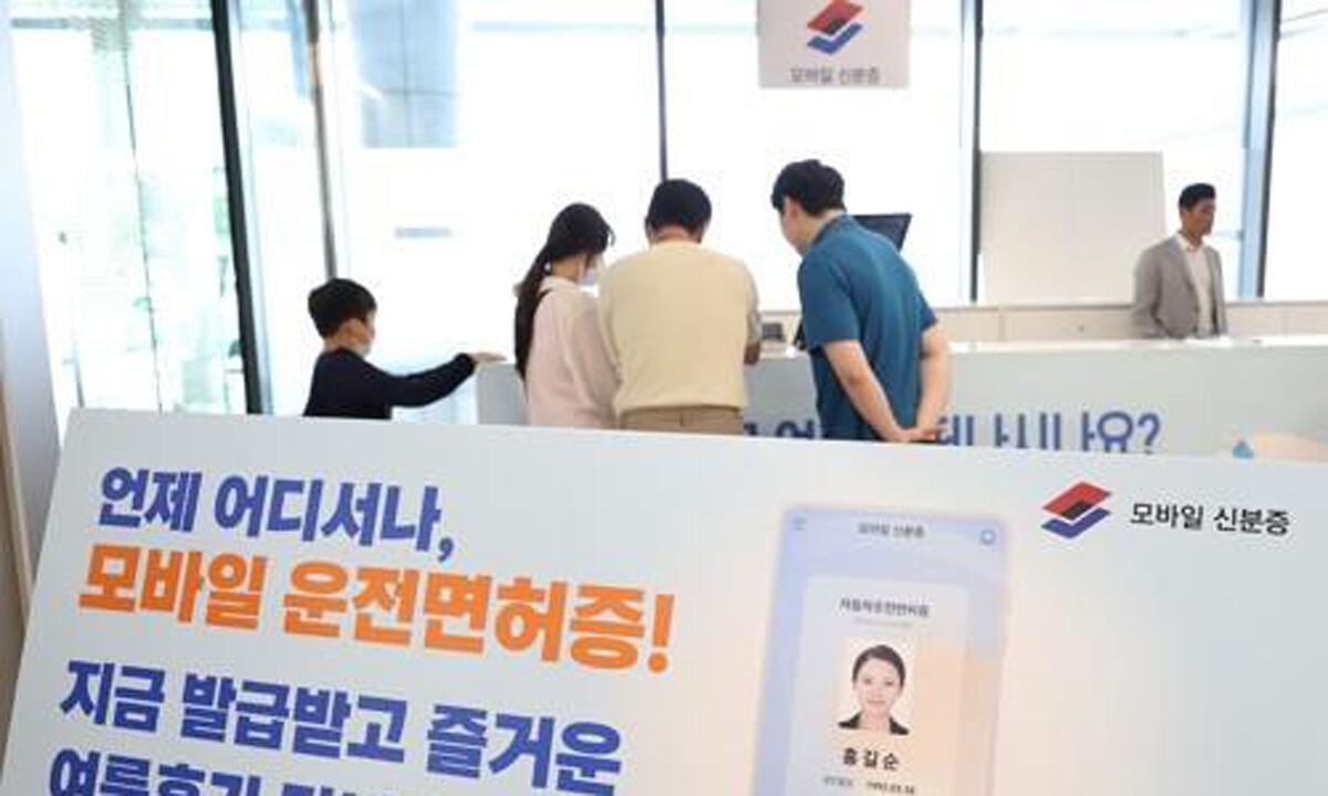 2023년 8월 서울 김포공항에서 시민들이 모바일 운전면허증을 발급받는 모습. 연합뉴스