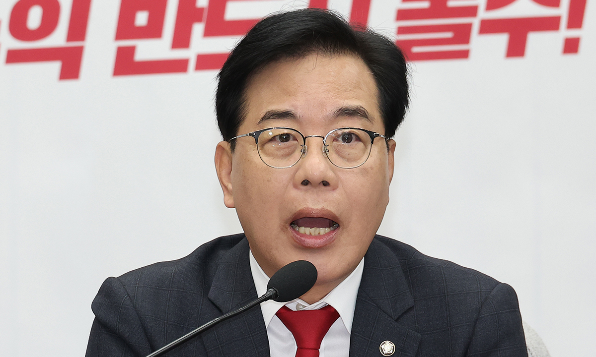 국민의힘 송언석 원내대표가 21일 서울 여의도 국회에서 열린 원내대책회의에서 발언하고 있다. 연합뉴스