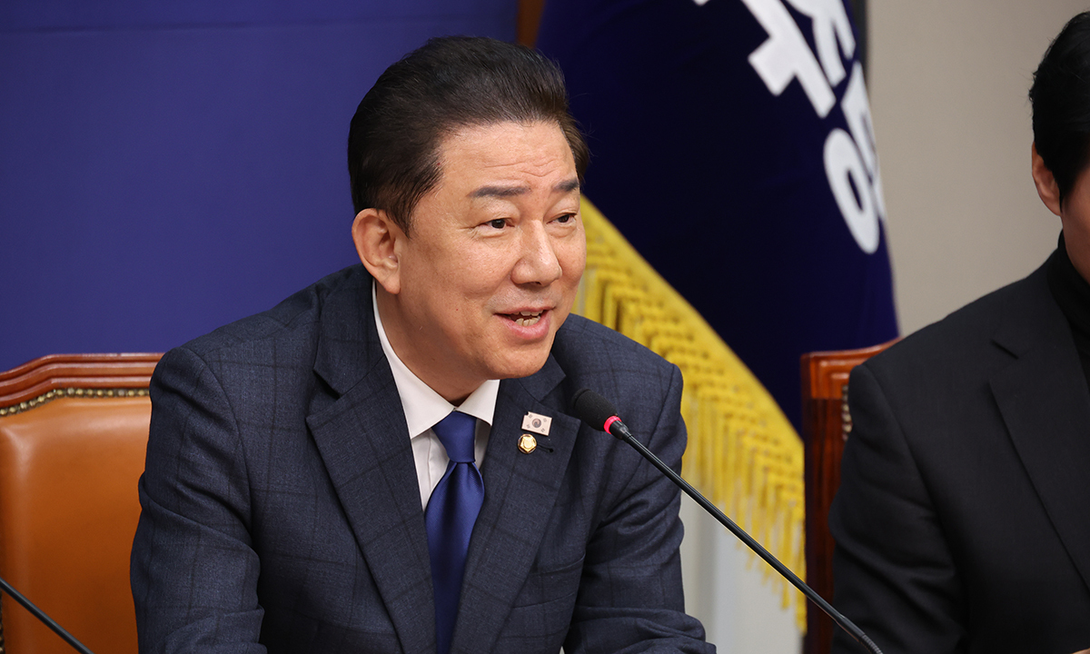 더불어민주당 김병기 원내대표가 21일 서울 여의도 국회에서 열린 최고위원회의에서 발언하고 있다. 연합뉴스