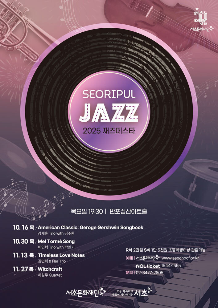 2025 <서리풀 재즈페스타>는 재즈 음악가들의 주요 레퍼토리인 ‘The Great American Songbook’을 주제로 재즈 스탠더드의 정수를 깊이 있게 전달해왔다. 올해 시리즈는 ‘American Classic: George Gershwin Songbook’, ‘Mel Tormé Songbook’, ‘Timeless Love Notes’ 등 총 세 차례의 공연을 성황리에 마무리하며 관객의 호응을 얻었다.