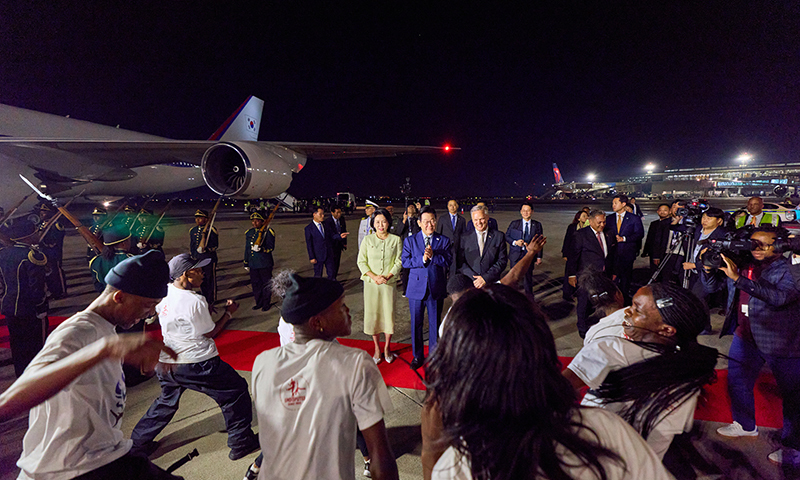 G20 정상회의를 계기로 중동·아프리카를 순방 중인 이 대통령은 이날 두 번째 방문국이었던 이집트 카이로를 떠나 요하네스버그 O.R.탐보 국제공항에 도착했다. 남아공 정부에서는 빌런 오캄 산림수산환경부 장관, 음마이키 두베 국제관계협력부 동북아시아 오세아니아 과장 등이 공항에 나와 이 대통령을 환영했다.