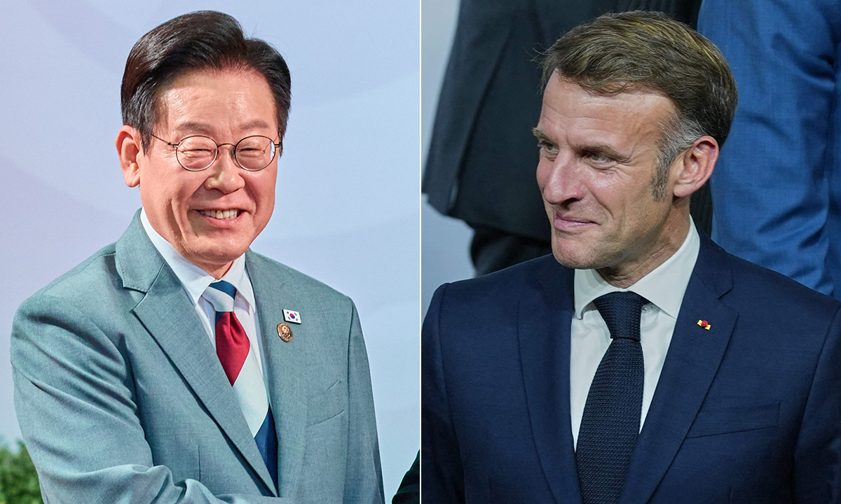 이재명 대통령(왼쪽), 에마뉘엘 마크롱 프랑스 대통령. 연합뉴스·AFP연합뉴스