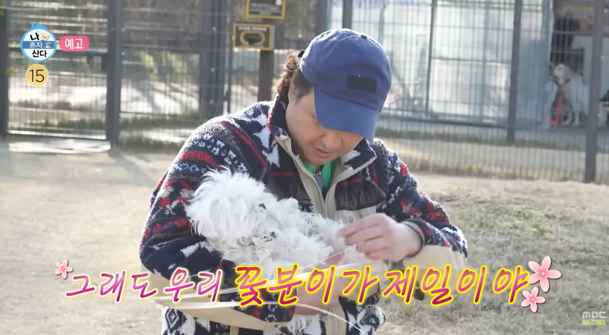 낯선 강아지들에 한눈을 파는 구성환에 꽃분이는 주변을 맴돌다 애써 외면했다. 그렇지만 곧 구성환은 꽃분이를 안아들었고, 자막은 ‘그래도 우리 꽃분이가 제일이야’라며 훈훈한 마무리를 예고했다.
