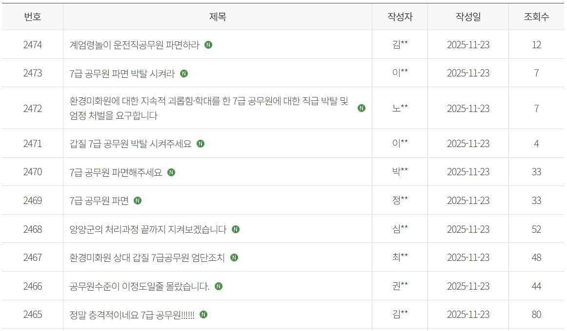 이같은 보도가 나온 뒤 군청 홈페이지 자유게시판에는 A씨에 대한 엄중 처벌 등의 강력한 대책을 촉구하는 글이 이날까지 100건 넘게 올라오기도 했다. “이게 2025년 대한민국 공무원이라니 믿어지지 않는다”, “양양군 차원의 사과문을 홈페이지 첫화면에 게시하라”, “계엄을 놀이로하는 양양 여행을 취소하겠다” 등의 내용이다.