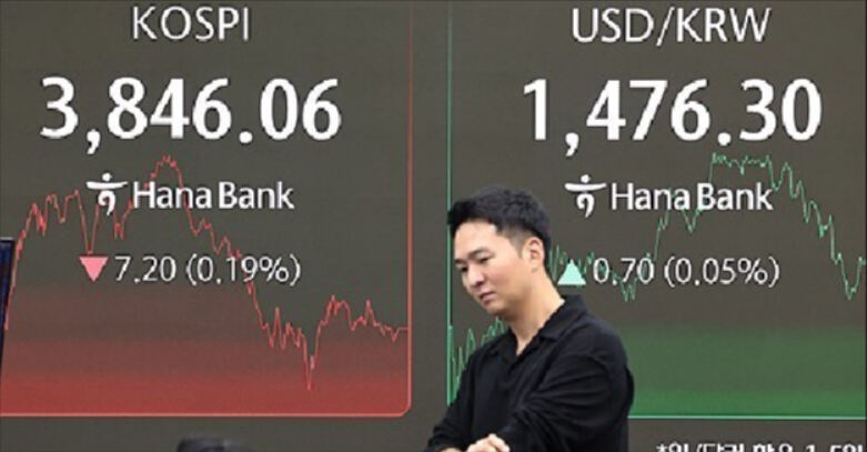 코스피는 전일보다 7.20포인트(0.19%) 내린 3,846.06으로 장을 마쳤다. 외국인은 이날 유가증권시장에서 약 4천298억원을 순매도했다.