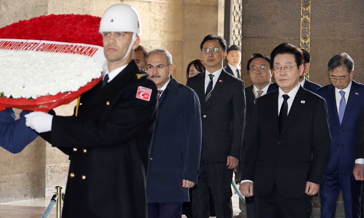 튀르키예를 국빈 방문한 이재명 대통령은 24일(현지시간) 튀르키예의 '국부'로 추앙받는 무스타파 케말 아타튀르크 초대 대통령의 묘소를 참배했다.
