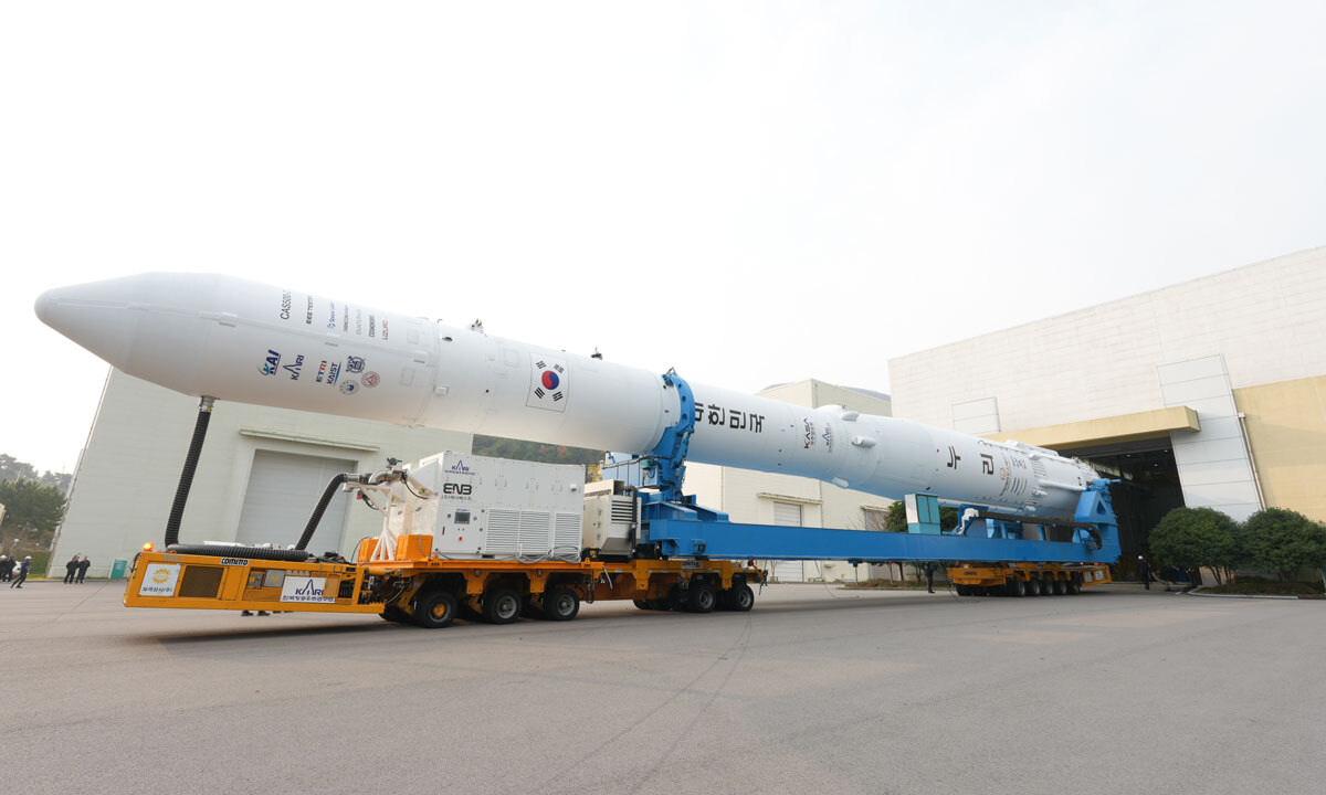 한국형발사체 누리호가 25일 전남 고흥 나로우주센터 내 발사대로 출발했다.