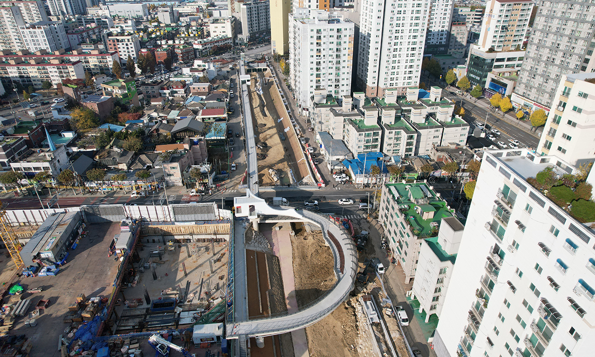 두꺼운 회색 콘크리트에 덮여 인천 부평구 도심 아래 잠자던 굴포천이 생태 하천으로 대변신을 앞뒀다. 1990년대 산업화에 따른 급격한 도시 팽창으로 덮개 구조물이 씌워져 주차장 등을 만들어 쓰인 지 30여년 만이다. 내년 봄쯤 따뜻해지는 계절이 되면 물고기가 유유히 헤엄치고, 곳곳에 심어 놓은 꽃도 만개할 것으로 기대된다.