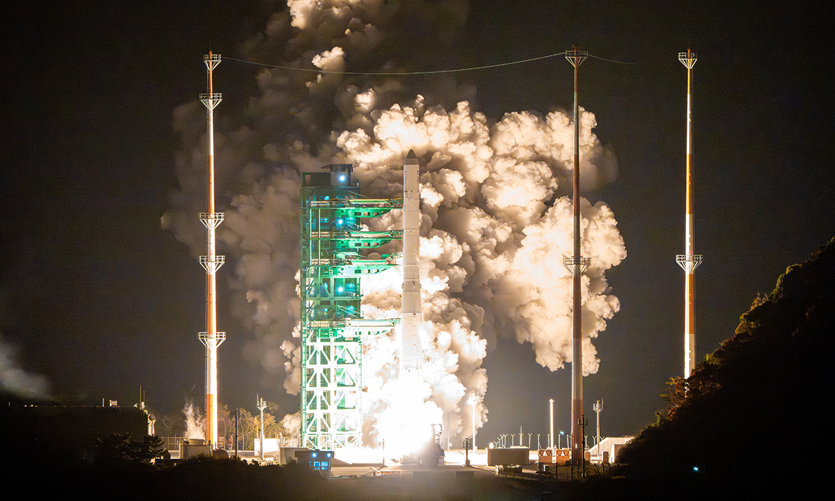 누리호는 27일 오전 1시13분 전남 고흥군 나로우주센터 발사대에서 발사됐다. 당초 0시55분 발사 예정이었으나 누리호에 추진제와 전력 등을 공급하는 엄빌리컬(탯줄) 회수 압력 센서 이상으로 발사 시간이 18분 연기됐다.