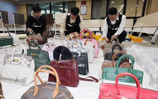 지식재산처 상표특별사법경찰은 소비자가 직접 위조 가방이나 지갑을 만들 수 있는 ‘위조상품 DIY 조립키트’를 제작·유통한 혐의로 3명을 불구속 기소했다고 27일 밝혔다. 사진은 상표특별사법경찰이 단속 결과를 브리핑한 뒤 압수품을 살펴보는 모습.