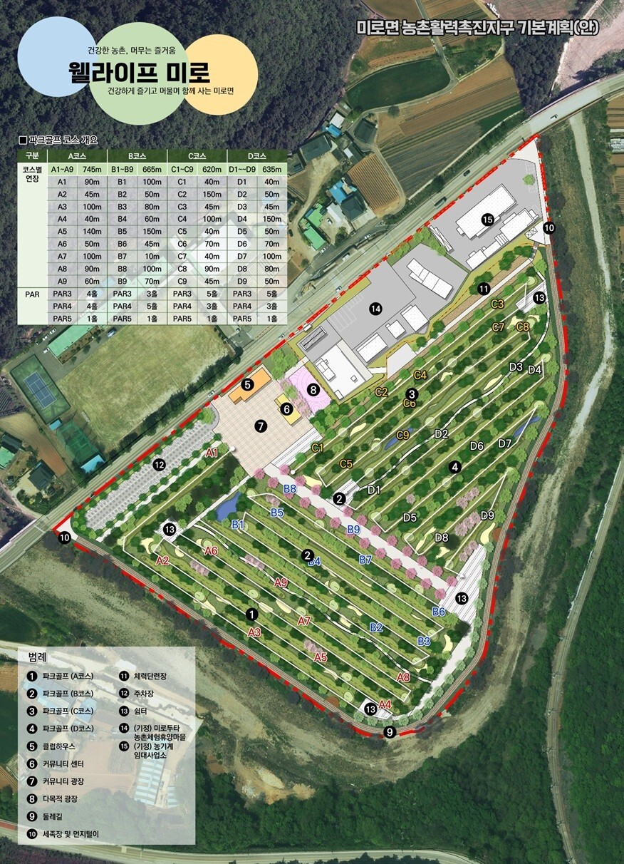 오는 12월 농촌활력촉진지구 세부시행계획 수립을 시작으로 2026년에 부지보상, 도시관리계획 변경, 농업진흥지역 해제 등 관련 인허가 행정절차를 진행한다. 2027년 12월 파크골프장 36홀 및 부대시설 전면 준공이 목표다.