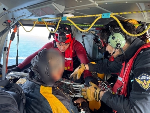 현장에 가장 먼저 도착한 동해해경청 포항항공대 헬기는 오전 11시 8분께 호이스트(인양 장치)를 이용해 A씨를 헬기로 들어 올려 구조했다.