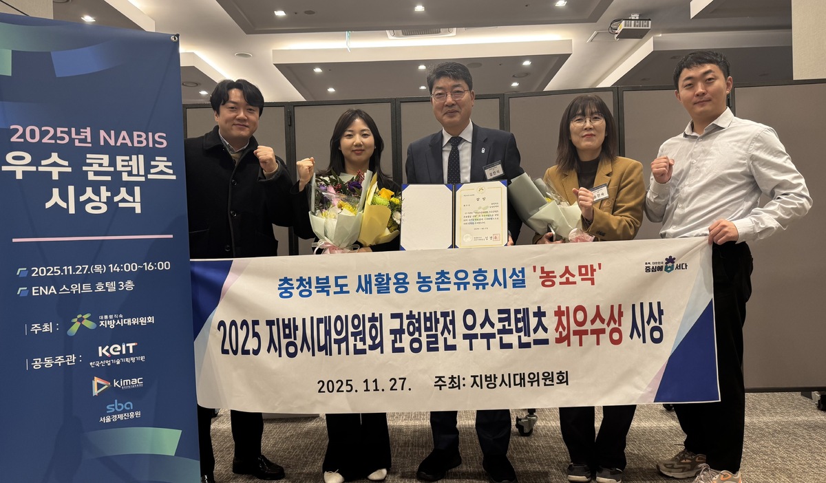 30일 도에 따르면 지난 27일 서울에서 나비스(NABIS) 균형발전 우수 콘텐츠 시상식에서 ‘농소막’이 지방시대위원장 표창받았다. 대통령 직속 지방시대위원회는 지방과 수도권의 균형발전을 위해 노력한 지자체∙수행기관의 혁신사례와 성공을 공유하고 확산하기 위해 지난해부터 우수기관을 선정하고 있다.