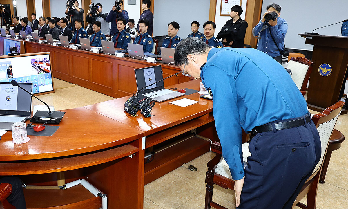 유 직무대행은 발언을 멈추고 자리에서 일어나 허리를 90도로 숙였다. 경찰청 차원의 공식 사과는 계엄 사태 이후 이번이 처음이다.