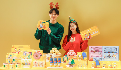 1일 서울 강남구 던킨 원더스 청담점에서 모델들이 2025년 연말 맞이 윈터 캠페인 ‘홈 포 더 홀리데이’ 도넛과 제품들을 소개하고 있다. 던킨은 연말을 맞아 월트디즈니 컴퍼니 코리아와 협업해 인기 애니메이션 시리즈 ‘심슨 가족’을 주로 한 시즌 한정판 도넛과 음료를 출시하고 캐릭터를 디자인에 반영한 제품들을 선보인다.