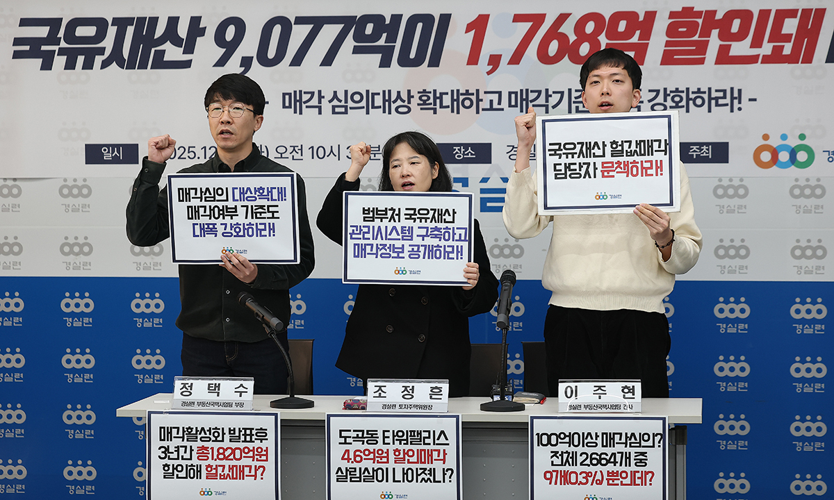 경실련은 국유재산 매각 심의대상을 확대해야 한다고 짚었다. 단체는 “정부는 국유재산 매각 시 500억원 이상 재산은 대통령 승인, 100억원 이상 500억원 미만 재산은 국유재산정책심의위원회 승인을 받도록 추진한다고 한다”며 “하지만 2020∼2025년에 매각된 국유재산 중 감정평가액 500억원 이상 국유재산은 0건, 100억원 이상 500억원 미만 국유재산은 9개에 불과했다”고 지적했다. 대다수가 사각지대에 놓인다는 비판이다.