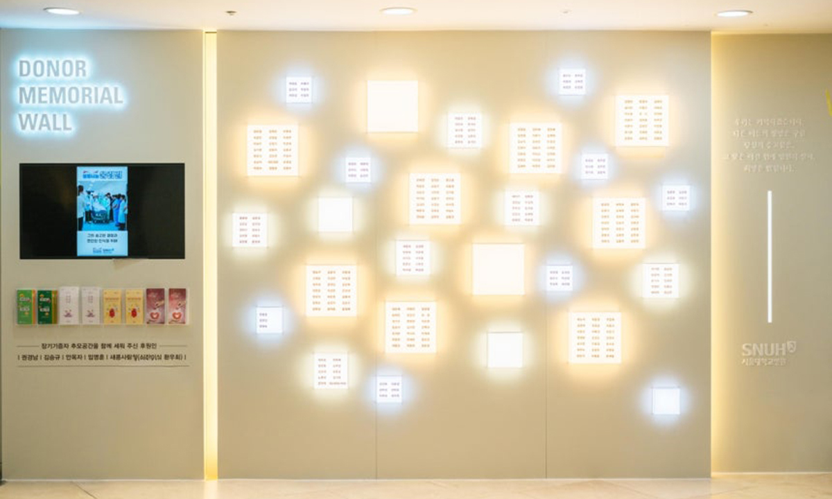 서울대병원이 숭고한 생명 나눔의 뜻을 기리고자 뇌사 장기기증자의 이름을 새긴 ‘추모의 벽’을 조성했다고 3일 밝혔다.서울대병원은 전날 제막식을 열고 본관 1층 로비에 2003년부터 올해까지 이 병원에서 장기기증을 실천한 뇌사자 273명의 이름을 새긴 ‘뇌사 장기기증자 추모의 벽’을 마련했다고 밝혔다.