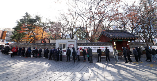 3일 서울 종로구 탑골공원 인근에서 노인들이 무료급식을 받기 위해 길게 줄을 서 대기하고 있다. 종로구청은 탑골공원의 역사성과 공공성 보존을 위해 공원 내외부를 제1호 금주구역으로 지정했다. 내년 3월 말까지 계도기간을 거쳐 4월부터 공원 주변에서 술을 마실 경우 과태료 10만원이 부과된다.